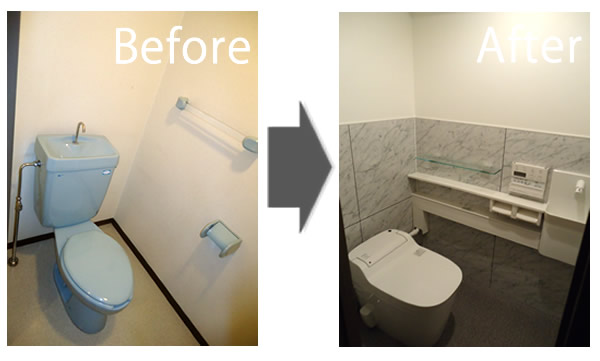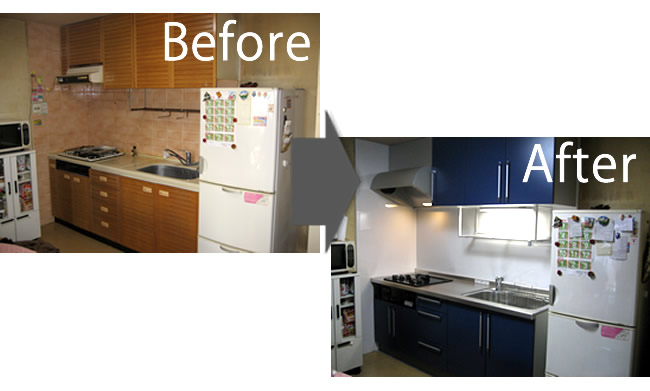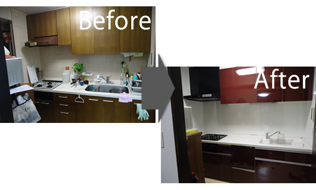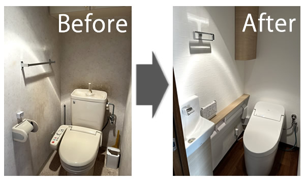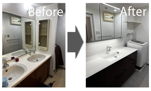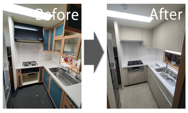 トイレ、洗面所は各1日、キッチンは2日工事になります。時間はAM9:00~PM5:00の間に作業いたします。